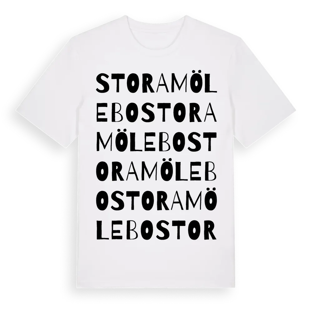 Stora Mölebo ordlek t-shirt är inspirerad av Stora Mölebo i Kalmar län, Sverige. Tröjan är designad för dig som har en speciell koppling till platsen – oavsett om du bor här, har rötterna här eller bara älskar Stora Mölebo.