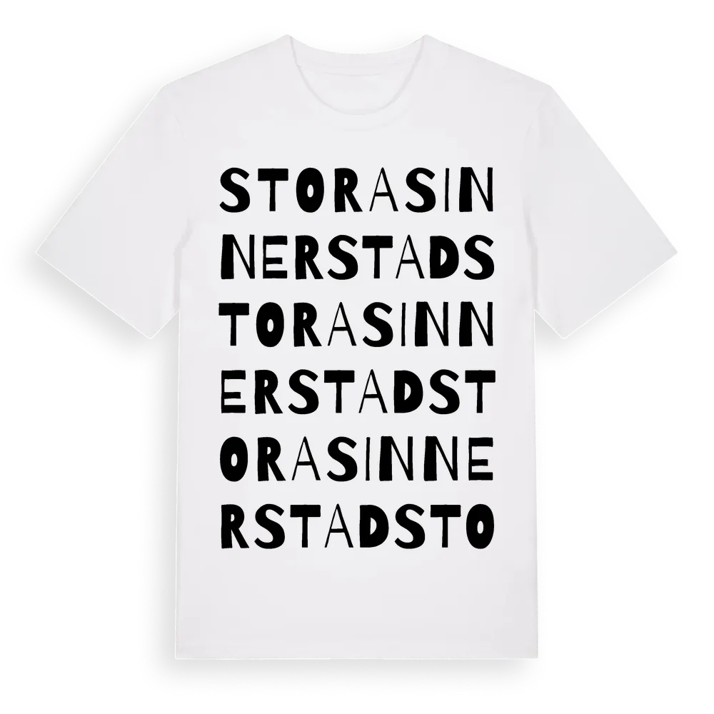 Stora Sinnerstad ordlek t-shirt är inspirerad av byn Stora Sinnerstad i Kalmar län, Sverige. Tröjan är designad för dig som har en speciell koppling till platsen – oavsett om du bor här, har rötterna här eller bara älskar Stora Sinnerstad.