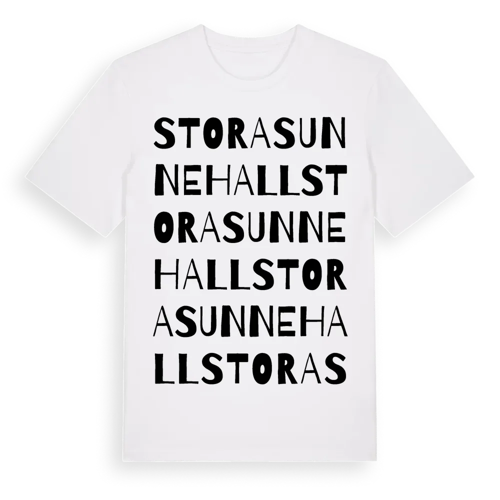 Stora Sunnehall ordlek t-shirt är inspirerad av Stora Sunnehall i Kalmar län, Sverige. Tröjan är designad för dig som har en speciell koppling till platsen – oavsett om du bor här, har rötterna här eller bara älskar Stora Sunnehall.