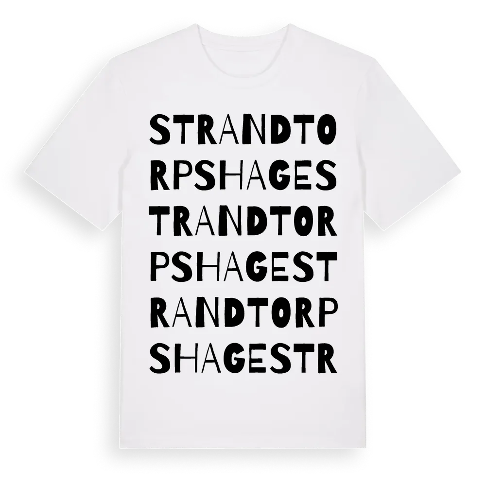 Strandtorpshage ordlek t-shirt är inspirerad av byn Strandtorpshage i Kalmar län, Sverige. Tröjan är designad för dig som har en speciell koppling till platsen – oavsett om du bor här, har rötterna här eller bara älskar Strandtorpshage.