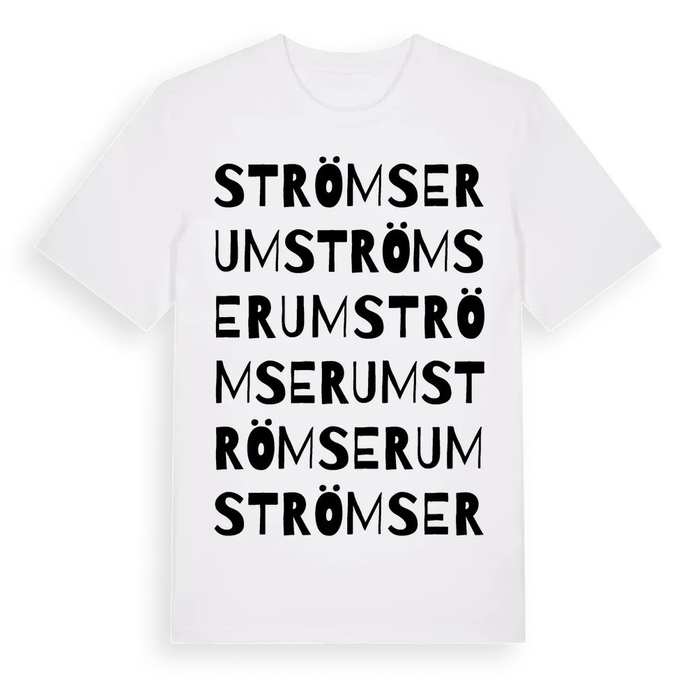 Strömserum ordlek t-shirt är inspirerad av Strömserum i Kalmar län, Sverige. Tröjan är designad för dig som har en speciell koppling till platsen – oavsett om du bor här, har rötterna här eller bara älskar Strömserum.