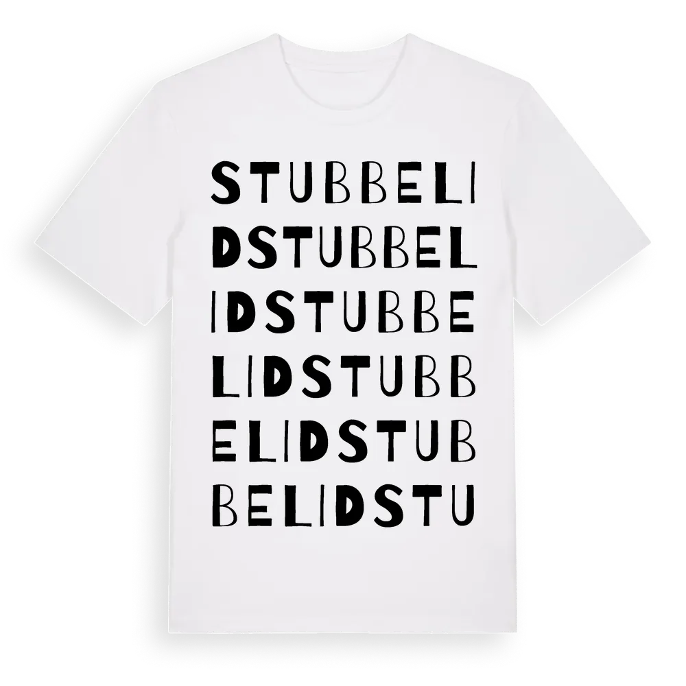 Stubbelid ordlek t-shirt är inspirerad av Stubbelid i Kalmar län, Sverige. Tröjan är designad för dig som har en speciell koppling till platsen – oavsett om du bor här, har rötterna här eller bara älskar Stubbelid.