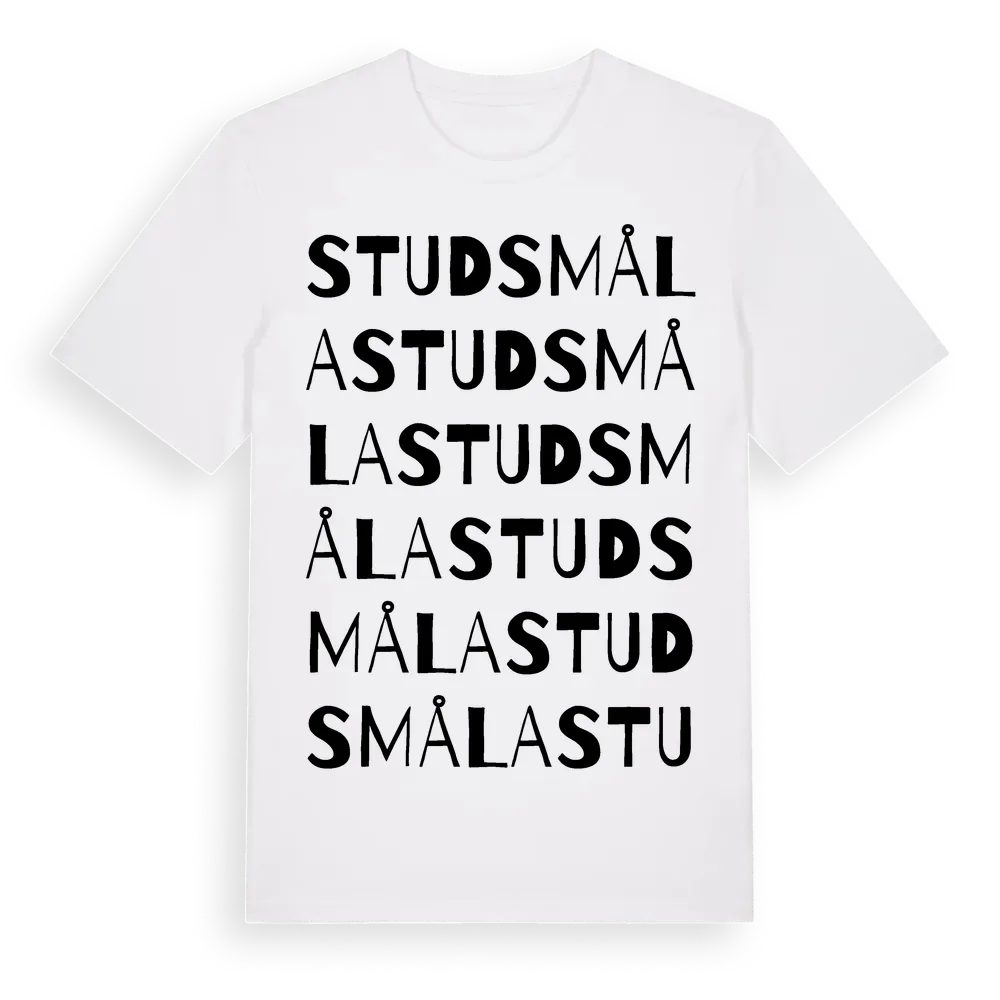 Studsmåla ordlek t-shirt är inspirerad av byn Studsmåla i Kalmar län, Sverige. Tröjan är designad för dig som har en speciell koppling till platsen – oavsett om du bor här, har rötterna här eller bara älskar Studsmåla.