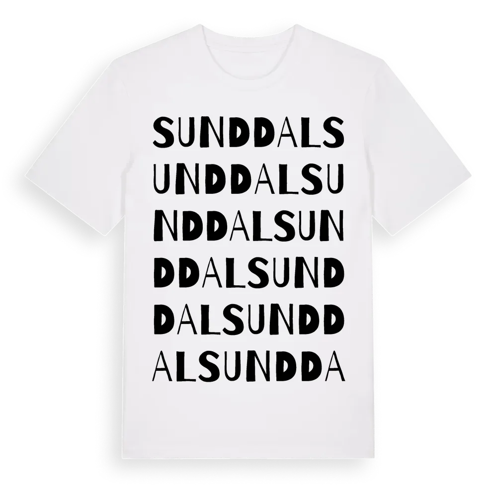 Sunddal ordlek t-shirt är inspirerad av Sunddal i Kalmar län, Sverige. Tröjan är designad för dig som har en speciell koppling till platsen – oavsett om du bor här, har rötterna här eller bara älskar Sunddal.