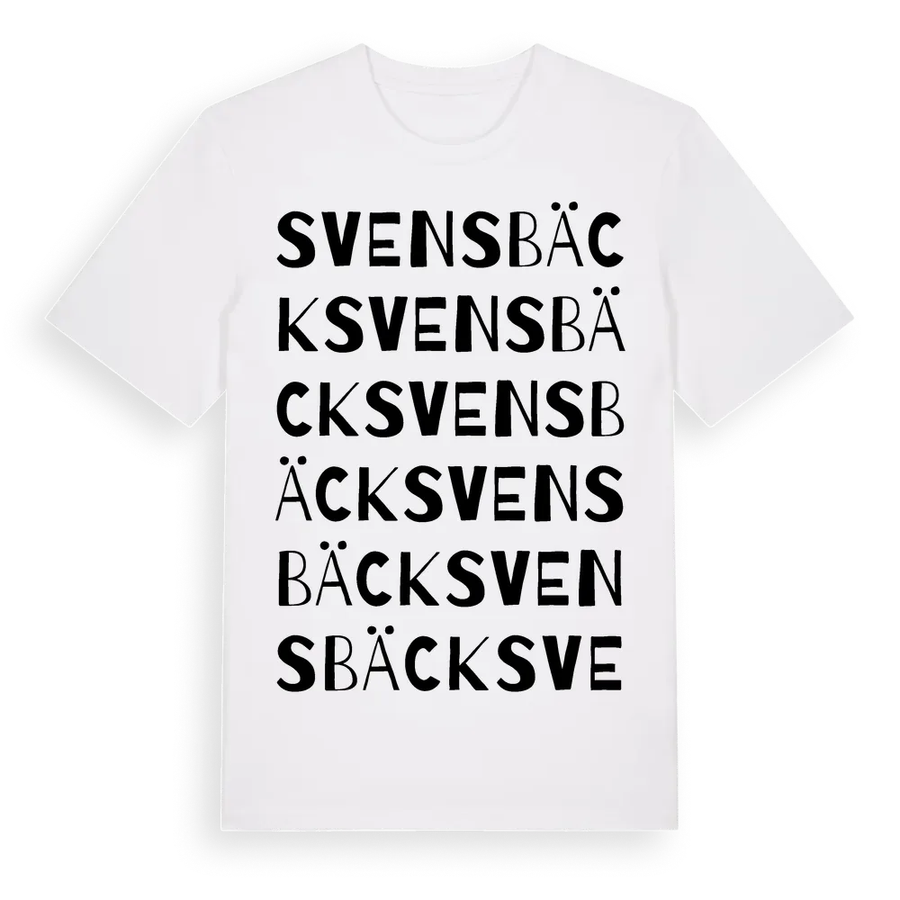 Svensbäck ordlek t-shirt är inspirerad av Svensbäck i Kalmar län, Sverige. Tröjan är designad för dig som har en speciell koppling till platsen – oavsett om du bor här, har rötterna här eller bara älskar Svensbäck.