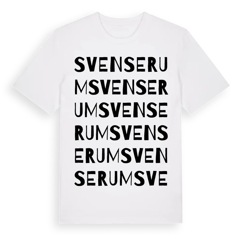 Svenserum ordlek t-shirt är inspirerad av Svenserum i Kalmar län, Sverige. Tröjan är designad för dig som har en speciell koppling till platsen – oavsett om du bor här, har rötterna här eller bara älskar Svenserum.