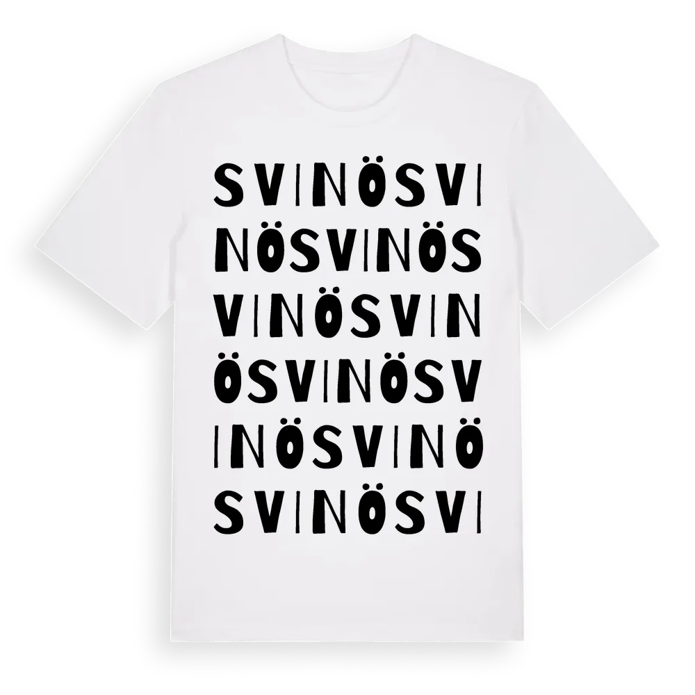 Svinö ordlek t-shirt är inspirerad av ön Svinö i Kalmar län, Sverige. Tröjan är designad för dig som har en speciell koppling till platsen – oavsett om du bor här, har rötterna här eller bara älskar Svinö.