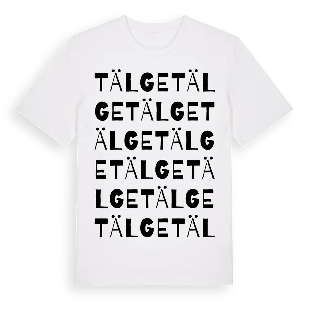 Tälge ordlek t-shirt är inspirerad av Tälge i Kalmar län, Sverige. Tröjan är designad för dig som har en speciell koppling till platsen – oavsett om du bor här, har rötterna här eller bara älskar Tälge.