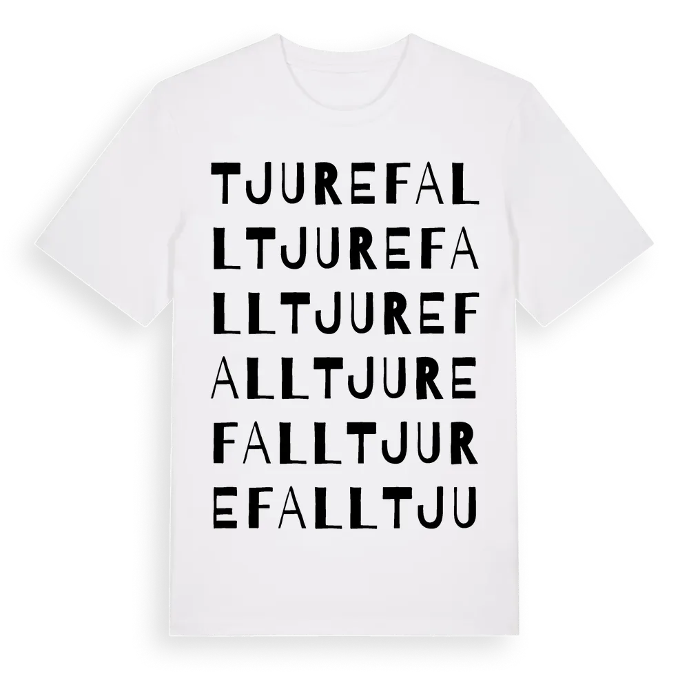 Tjurefall ordlek t-shirt är inspirerad av Tjurefall i Kalmar län, Sverige. Tröjan är designad för dig som har en speciell koppling till platsen – oavsett om du bor här, har rötterna här eller bara älskar Tjurefall.