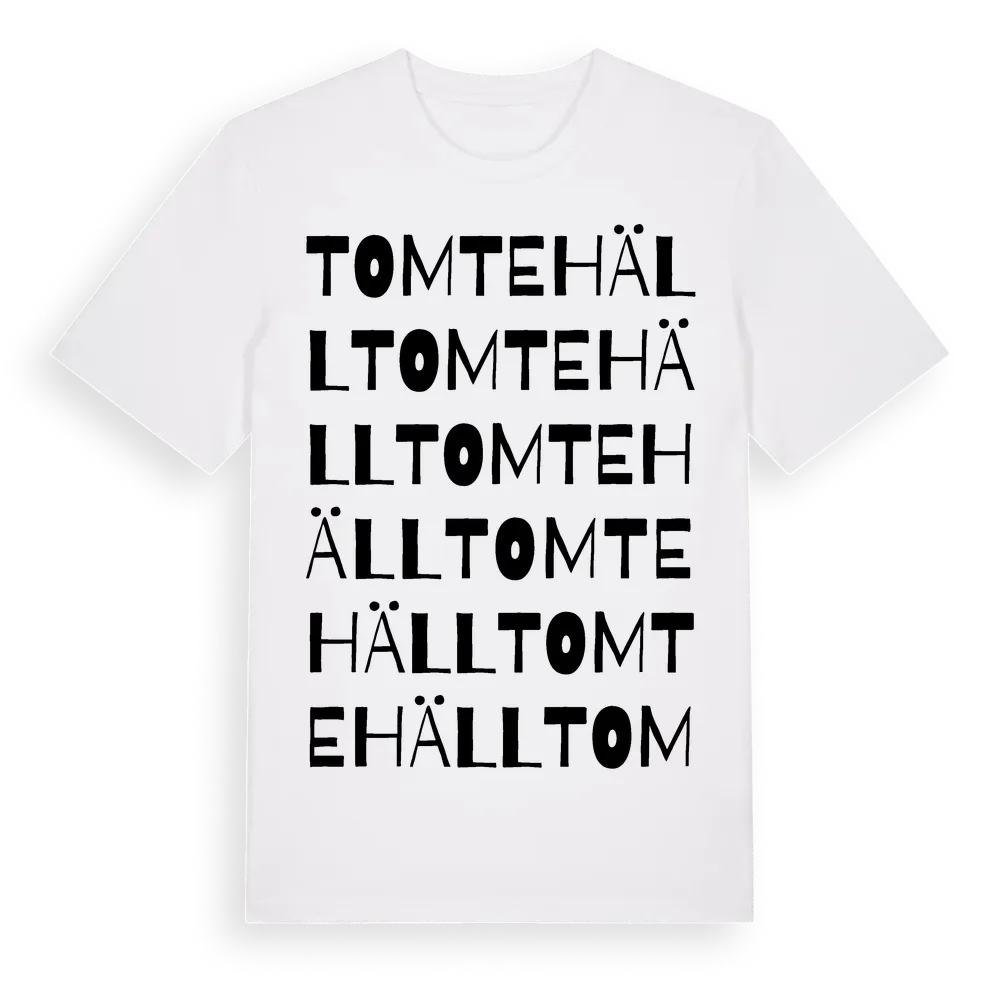 En ordlek byggd på Tomtehälls namn. Subtilt och klurig – ett motiv som bara de som verkligen känner platsen fullt ut förstår. Premium bomull, unisex – från Tomtehäll i Kalmar län.