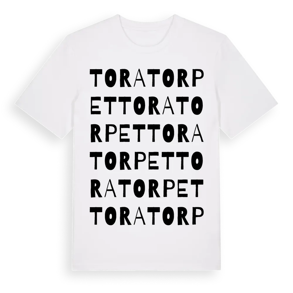 Toratorpet ordlek t-shirt är inspirerad av Toratorpet i Kalmar län, Sverige. Tröjan är designad för dig som har en speciell koppling till platsen – oavsett om du bor här, har rötterna här eller bara älskar Toratorpet.