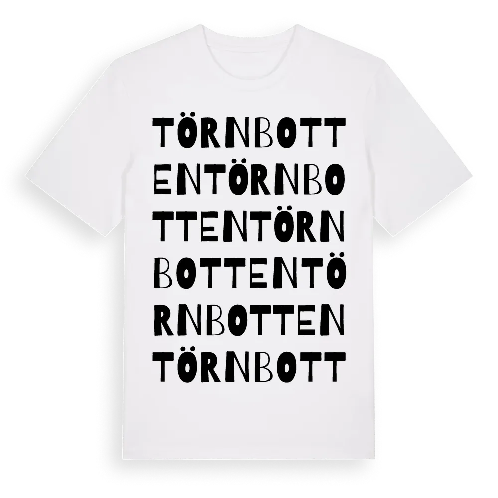 Törnbotten ordlek t-shirt är inspirerad av byn Törnbotten i Kalmar län, Sverige. Tröjan är designad för dig som har en speciell koppling till platsen – oavsett om du bor här, har rötterna här eller bara älskar Törnbotten.