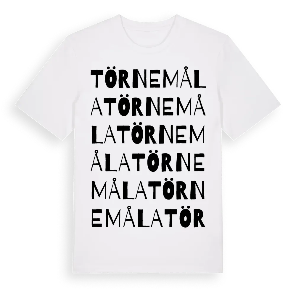 Törnemåla ordlek t-shirt är inspirerad av byn Törnemåla i Kalmar län, Sverige. Tröjan är designad för dig som har en speciell koppling till platsen – oavsett om du bor här, har rötterna här eller bara älskar Törnemåla.