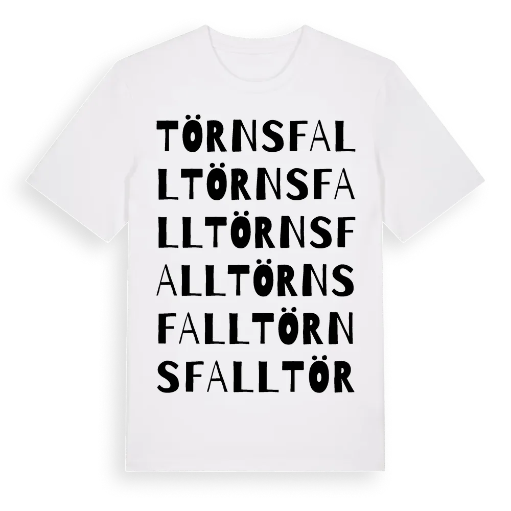 Törnsfall ordlek t-shirt är inspirerad av byn Törnsfall i Kalmar län, Sverige. Tröjan är designad för dig som har en speciell koppling till platsen – oavsett om du bor här, har rötterna här eller bara älskar Törnsfall.