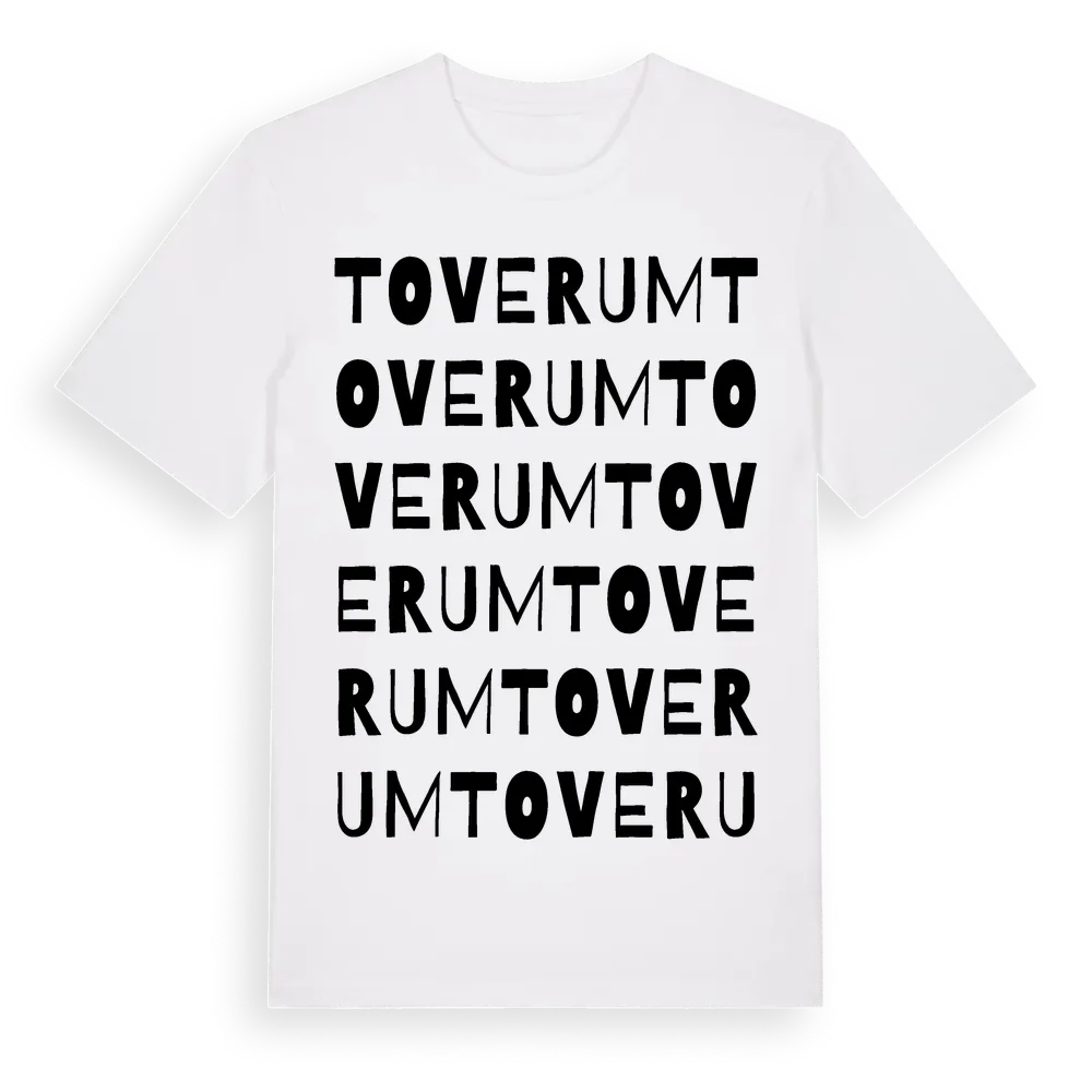Toverum ordlek t-shirt är inspirerad av byn Toverum i Kalmar län, Sverige. Tröjan är designad för dig som har en speciell koppling till platsen – oavsett om du bor här, har rötterna här eller bara älskar Toverum.