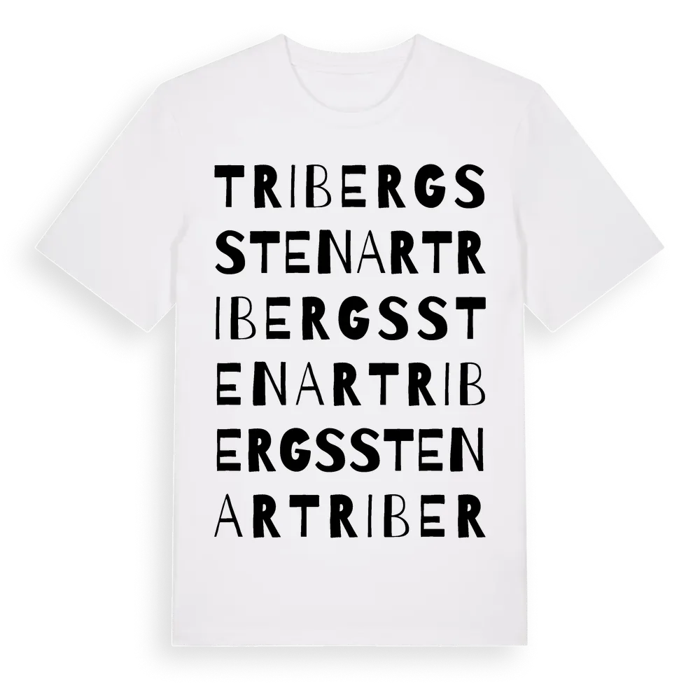 Tribergsstenar ordlek t-shirt är inspirerad av Tribergsstenar i Kalmar län, Sverige. Tröjan är designad för dig som har en speciell koppling till platsen – oavsett om du bor här, har rötterna här eller bara älskar Tribergsstenar.