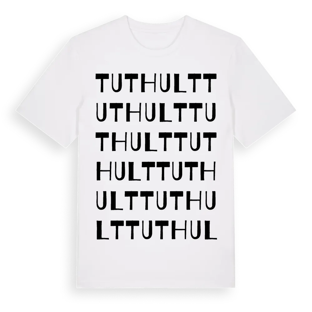 Tuthult ordlek t-shirt är inspirerad av byn Tuthult i Kalmar län, Sverige. Tröjan är designad för dig som har en speciell koppling till platsen – oavsett om du bor här, har rötterna här eller bara älskar Tuthult.