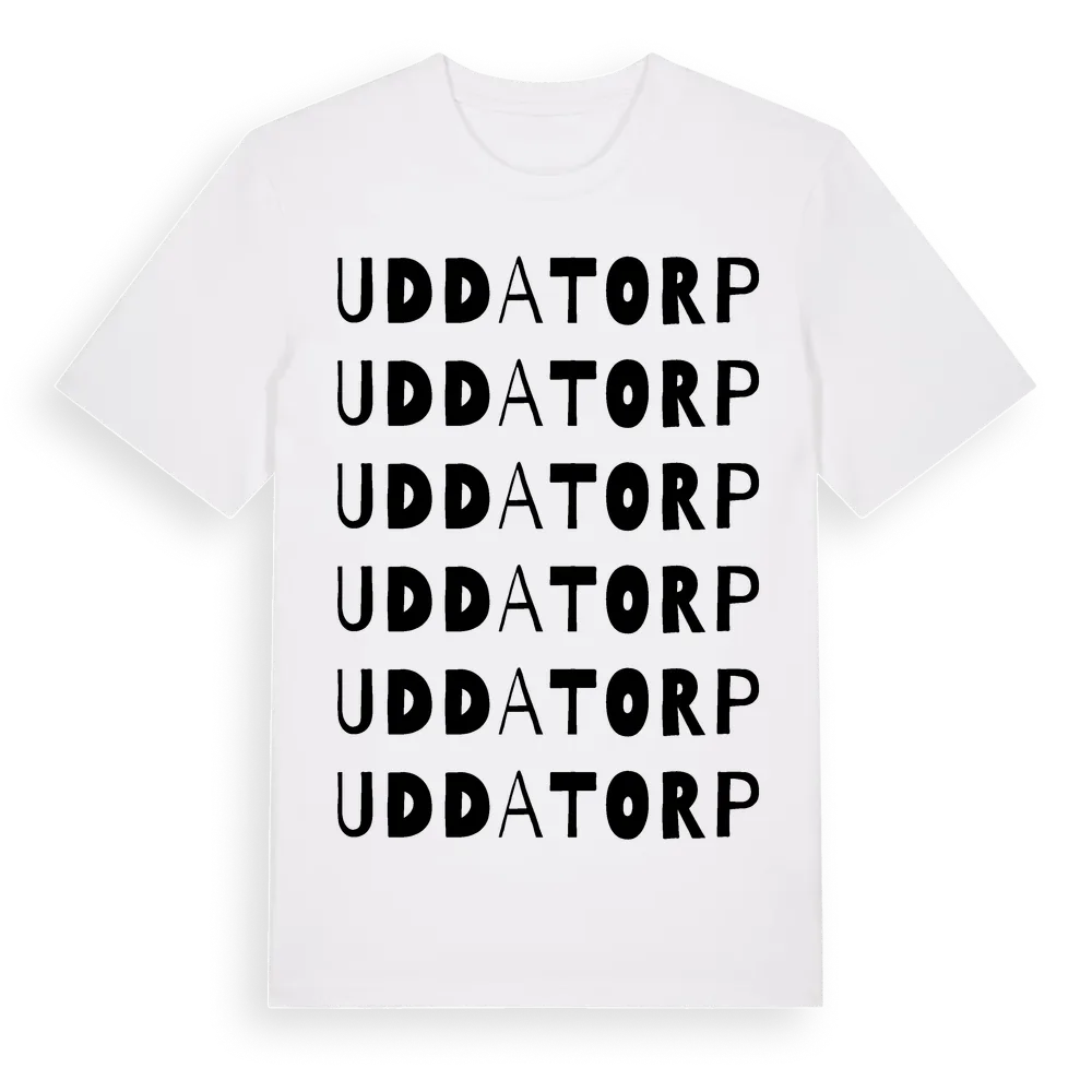 Uddatorp ordlek t-shirt är inspirerad av Uddatorp i Kalmar län, Sverige. Tröjan är designad för dig som har en speciell koppling till platsen – oavsett om du bor här, har rötterna här eller bara älskar Uddatorp.