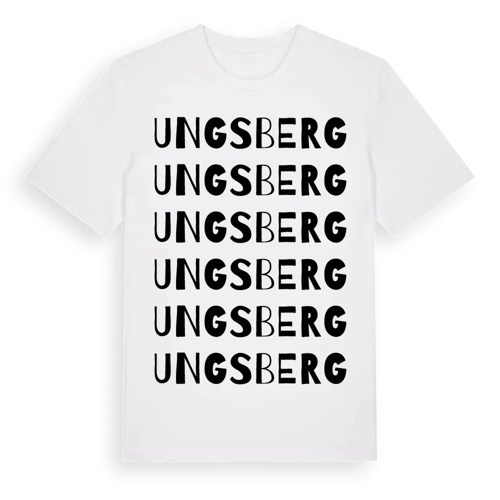 Ungsberg ordlek t-shirt är inspirerad av byn Ungsberg i Kalmar län, Sverige. Tröjan är designad för dig som har en speciell koppling till platsen – oavsett om du bor här, har rötterna här eller bara älskar Ungsberg.