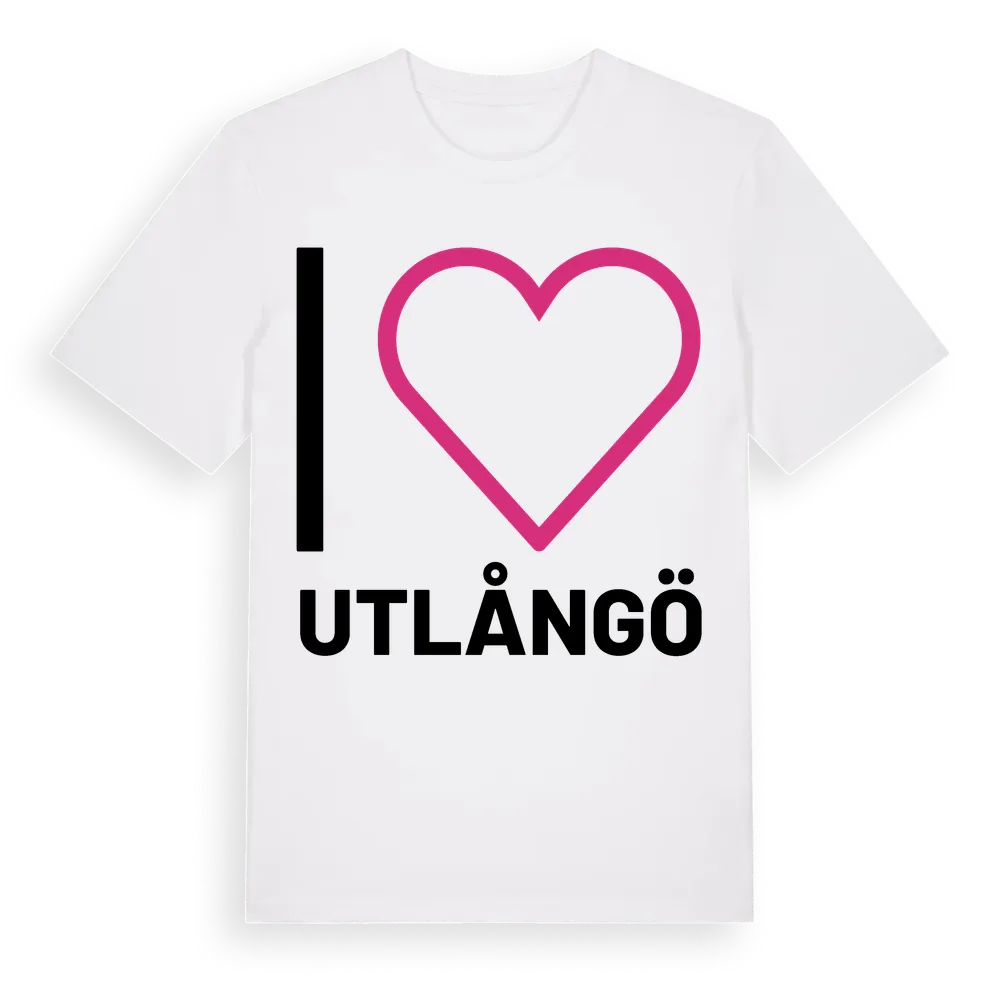 Det klassiska "I ❤ Utlångö"-motivet i stort format som täcker hela bröstet. För dig som vill visa kärleken till Utlångö på riktigt. Premium bomull, unisex – från ön Utlångö i Kalmar län.