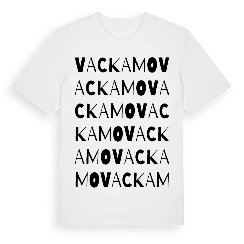 Vackamo ordlek t-shirt är inspirerad av byn Vackamo i Kalmar län, Sverige. Tröjan är designad för dig som har en speciell koppling till platsen – oavsett om du bor här, har rötterna här eller bara älskar Vackamo.