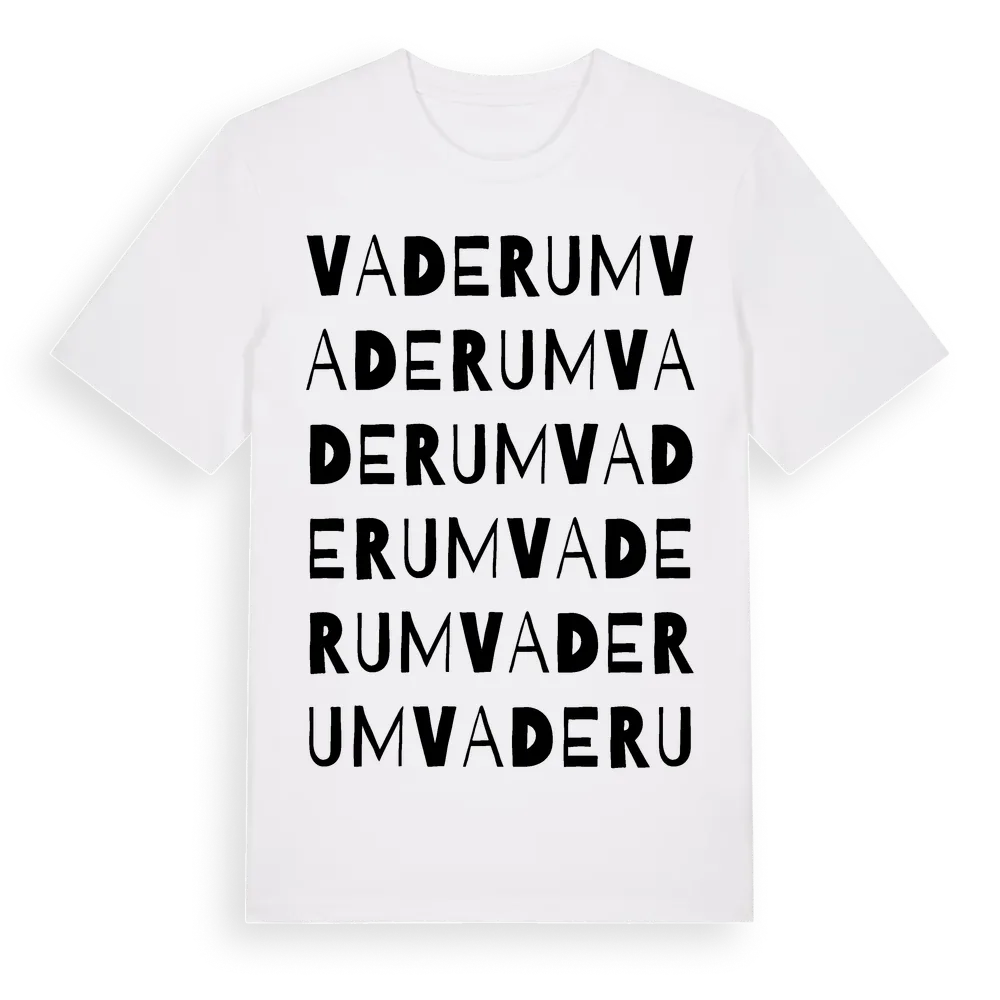 Vaderum ordlek t-shirt är inspirerad av Vaderum i Kalmar län, Sverige. Tröjan är designad för dig som har en speciell koppling till platsen – oavsett om du bor här, har rötterna här eller bara älskar Vaderum.