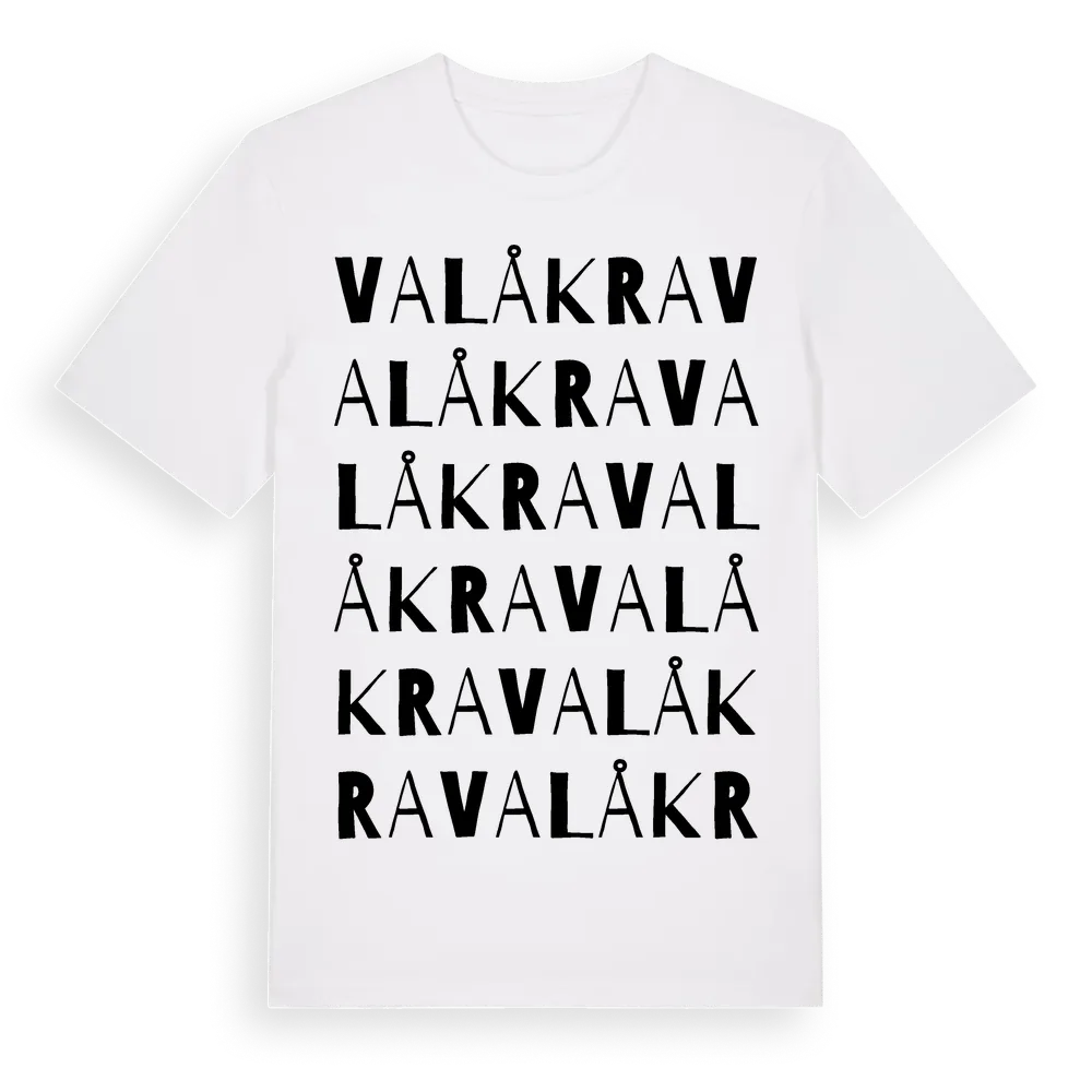 Valåkra ordlek t-shirt är inspirerad av Valåkra i Kalmar län, Sverige. Tröjan är designad för dig som har en speciell koppling till platsen – oavsett om du bor här, har rötterna här eller bara älskar Valåkra.