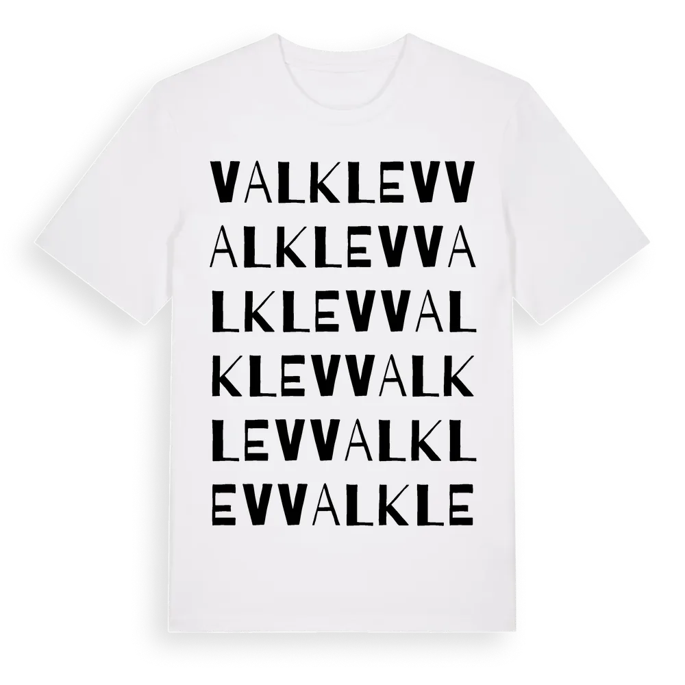 Valklev ordlek t-shirt är inspirerad av Valklev i Kalmar län, Sverige. Tröjan är designad för dig som har en speciell koppling till platsen – oavsett om du bor här, har rötterna här eller bara älskar Valklev.