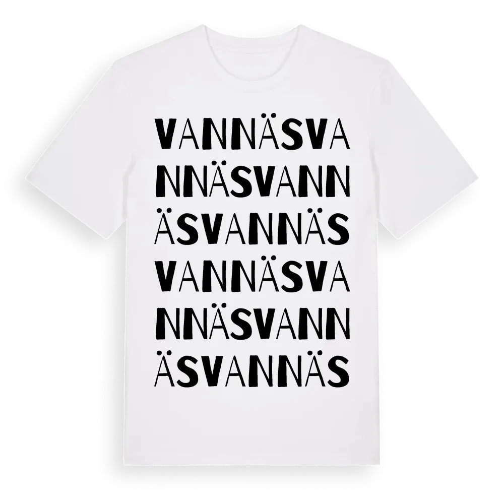 Vannäs ordlek t-shirt är inspirerad av Vannäs i Kalmar län, Sverige. Tröjan är designad för dig som har en speciell koppling till platsen – oavsett om du bor här, har rötterna här eller bara älskar Vannäs.