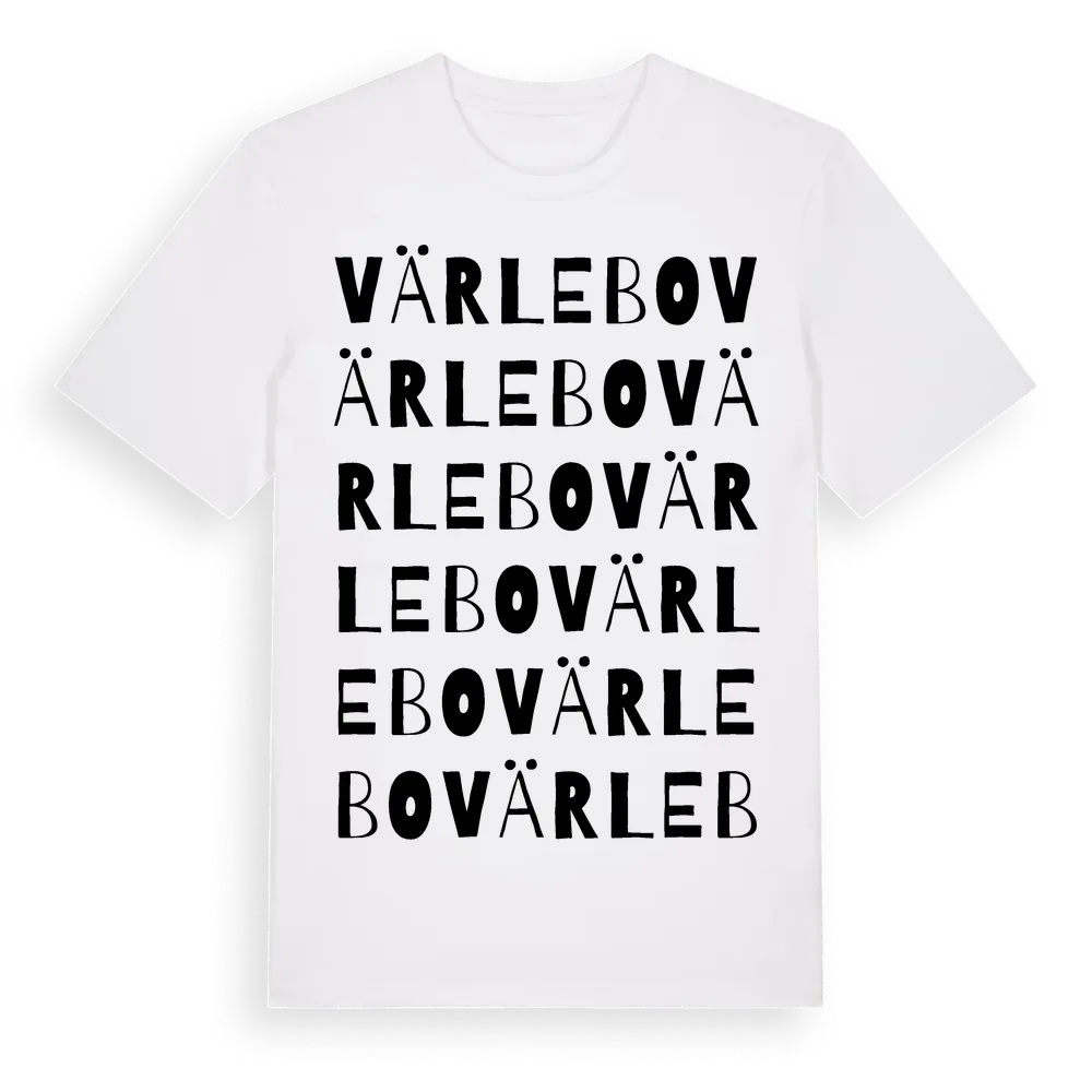 Värlebo ordlek t-shirt är inspirerad av byn Värlebo i Kalmar län, Sverige. Tröjan är designad för dig som har en speciell koppling till platsen – oavsett om du bor här, har rötterna här eller bara älskar Värlebo.
