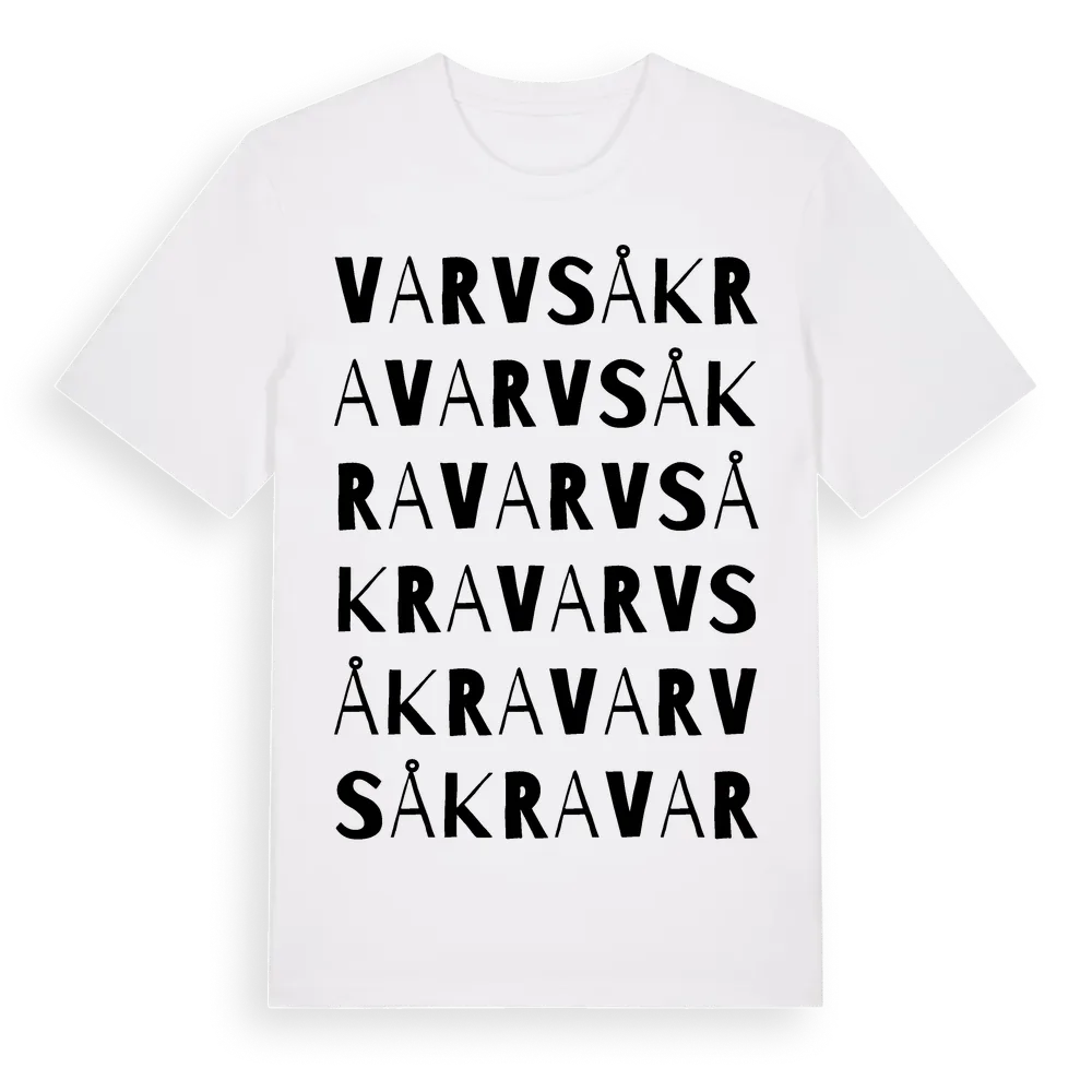 Varvsåkra ordlek t-shirt är inspirerad av Varvsåkra i Kalmar län, Sverige. Tröjan är designad för dig som har en speciell koppling till platsen – oavsett om du bor här, har rötterna här eller bara älskar Varvsåkra.