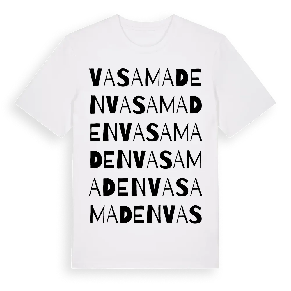 Vasamaden ordlek t-shirt är inspirerad av Vasamaden i Kalmar län, Sverige. Tröjan är designad för dig som har en speciell koppling till platsen – oavsett om du bor här, har rötterna här eller bara älskar Vasamaden.