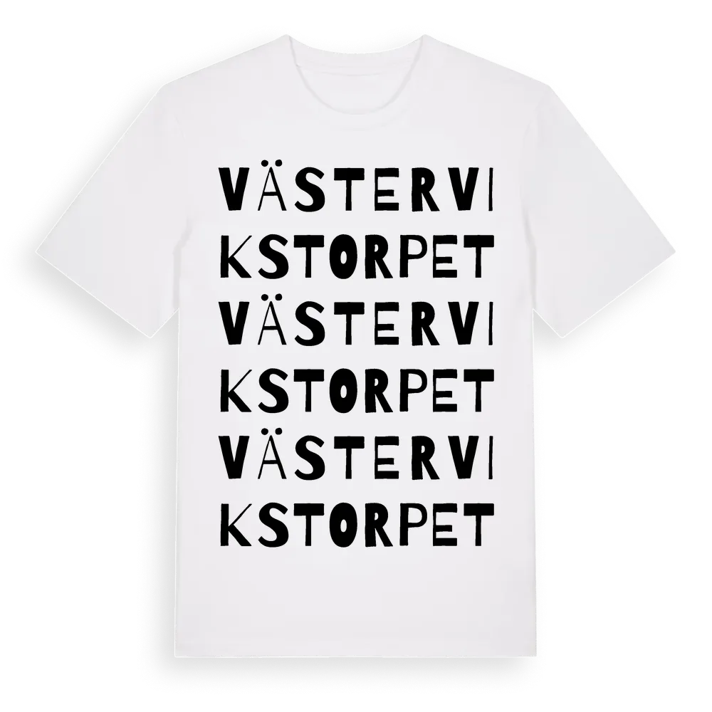 Västervikstorpet ordlek t-shirt är inspirerad av Västervikstorpet i Kalmar län, Sverige. Tröjan är designad för dig som har en speciell koppling till platsen – oavsett om du bor här, har rötterna här eller bara älskar Västervikstorpet.