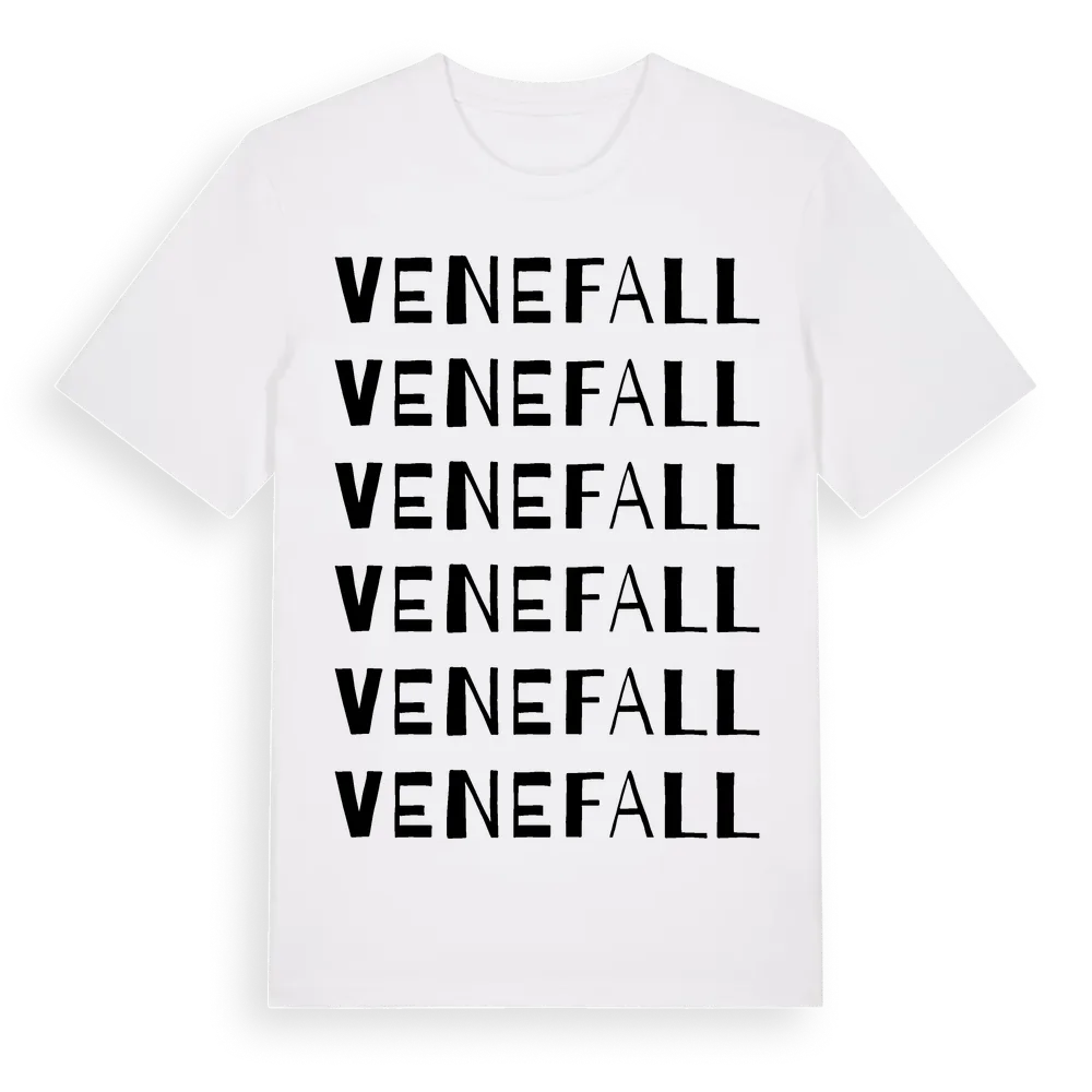 En ordlek byggd på Venefalls namn. Subtilt och klurig – ett motiv som bara de som verkligen känner platsen fullt ut förstår. Premium bomull, unisex – från Venefall i Kalmar län.