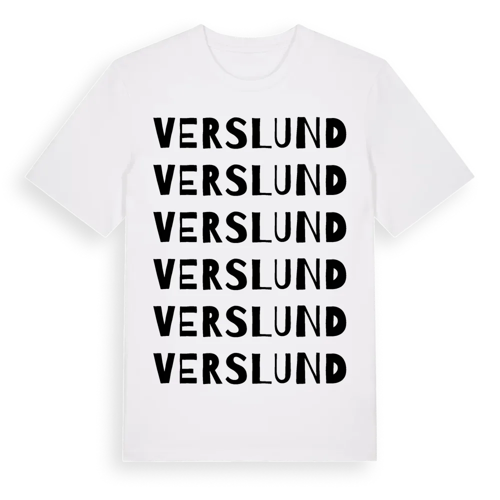 Verslund ordlek t-shirt är inspirerad av Verslund i Kalmar län, Sverige. Tröjan är designad för dig som har en speciell koppling till platsen – oavsett om du bor här, har rötterna här eller bara älskar Verslund.