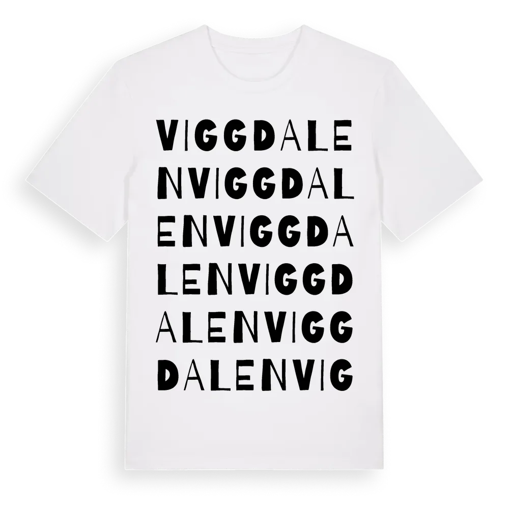 Viggdalen ordlek t-shirt är inspirerad av Viggdalen i Kalmar län, Sverige. Tröjan är designad för dig som har en speciell koppling till platsen – oavsett om du bor här, har rötterna här eller bara älskar Viggdalen.