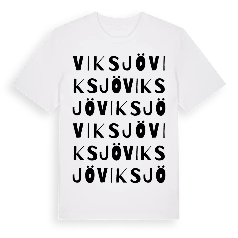 Viksjö ordlek t-shirt är inspirerad av byn Viksjö i Kalmar län, Sverige. Tröjan är designad för dig som har en speciell koppling till platsen – oavsett om du bor här, har rötterna här eller bara älskar Viksjö.