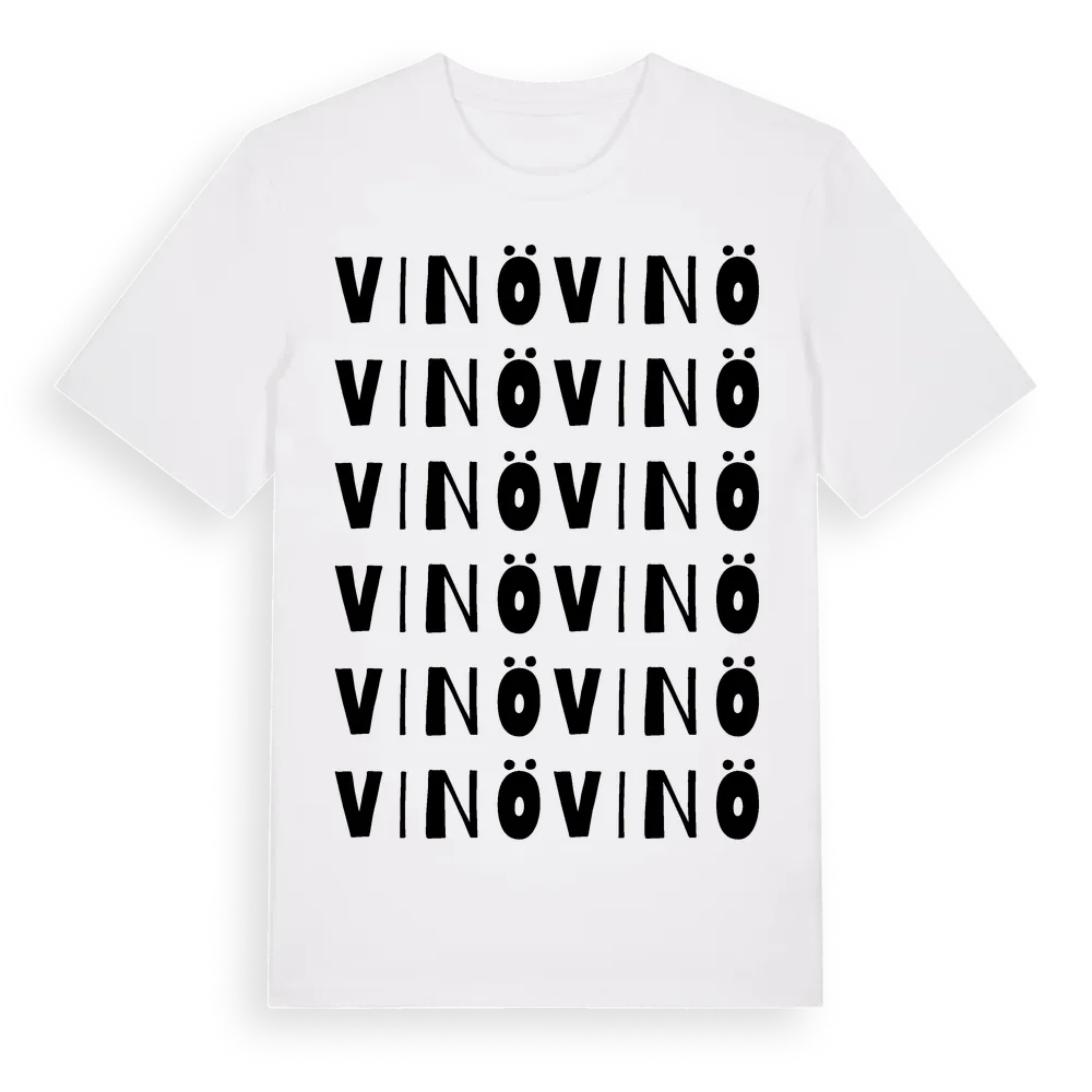 En ordlek byggd på Vinös namn. Subtilt och klurig – ett motiv som bara de som verkligen känner platsen fullt ut förstår. Premium bomull, unisex – från ön Vinö i Kalmar län.