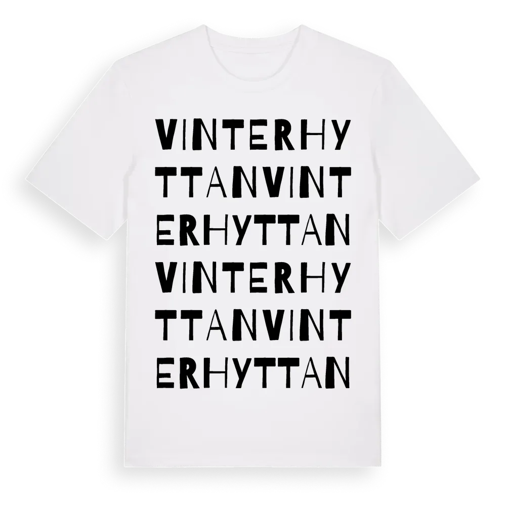 Vinterhyttan ordlek t-shirt är inspirerad av Vinterhyttan i Kalmar län, Sverige. Tröjan är designad för dig som har en speciell koppling till platsen – oavsett om du bor här, har rötterna här eller bara älskar Vinterhyttan.