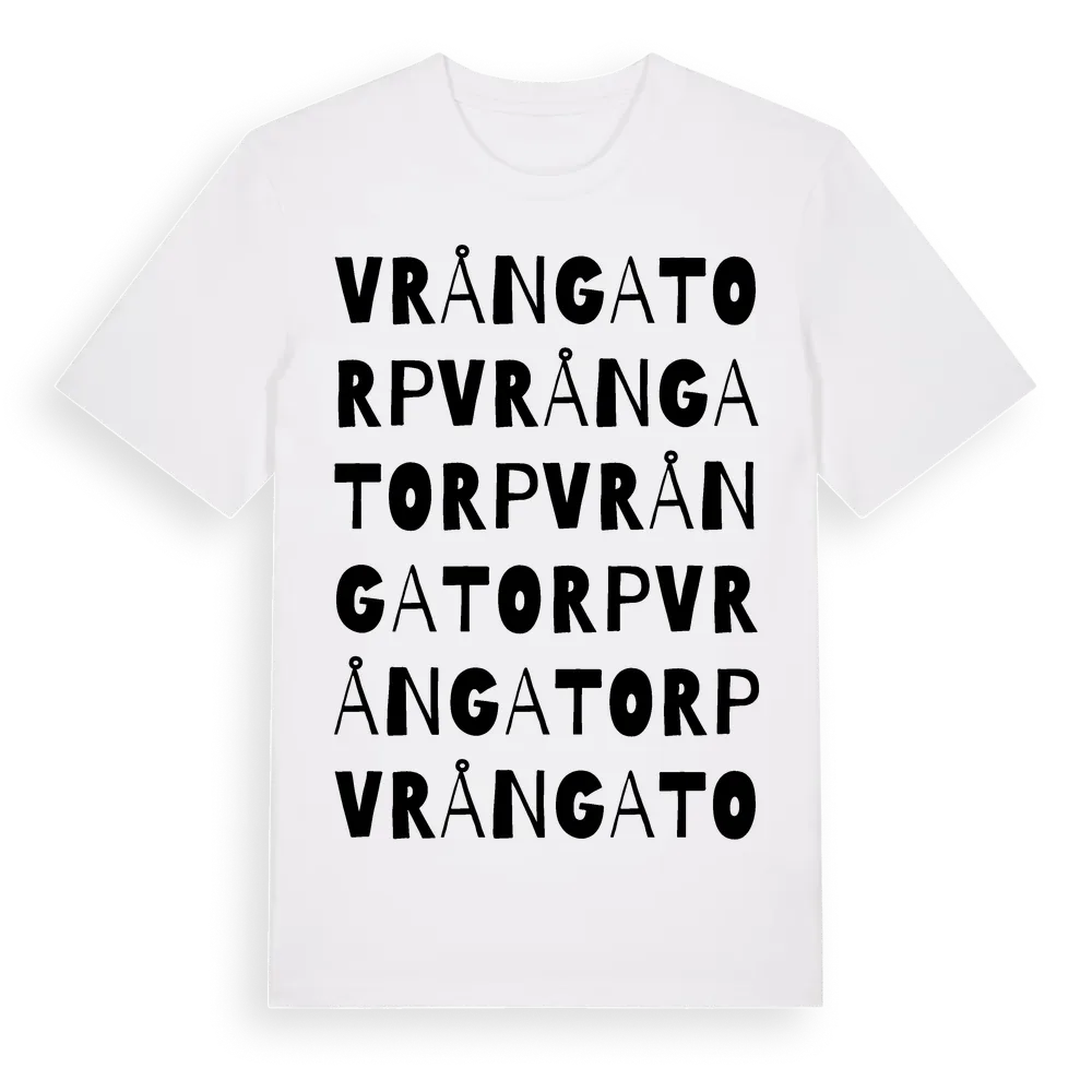 Vrångatorp ordlek t-shirt är inspirerad av byn Vrångatorp i Kalmar län, Sverige. Tröjan är designad för dig som har en speciell koppling till platsen – oavsett om du bor här, har rötterna här eller bara älskar Vrångatorp.