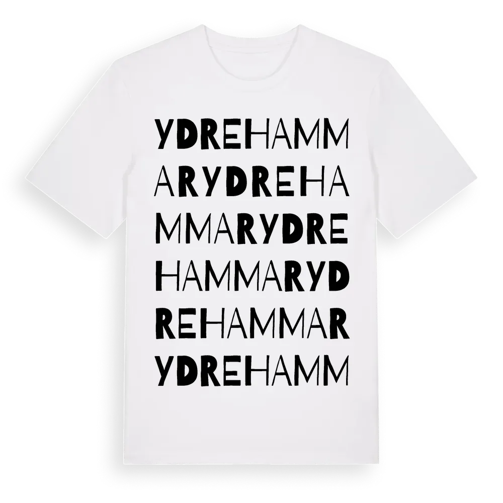 En ordlek byggd på Ydrehammars namn. Subtilt och klurig – ett motiv som bara de som verkligen känner platsen fullt ut förstår. Premium bomull, unisex – från Ydrehammar i Kalmar län.