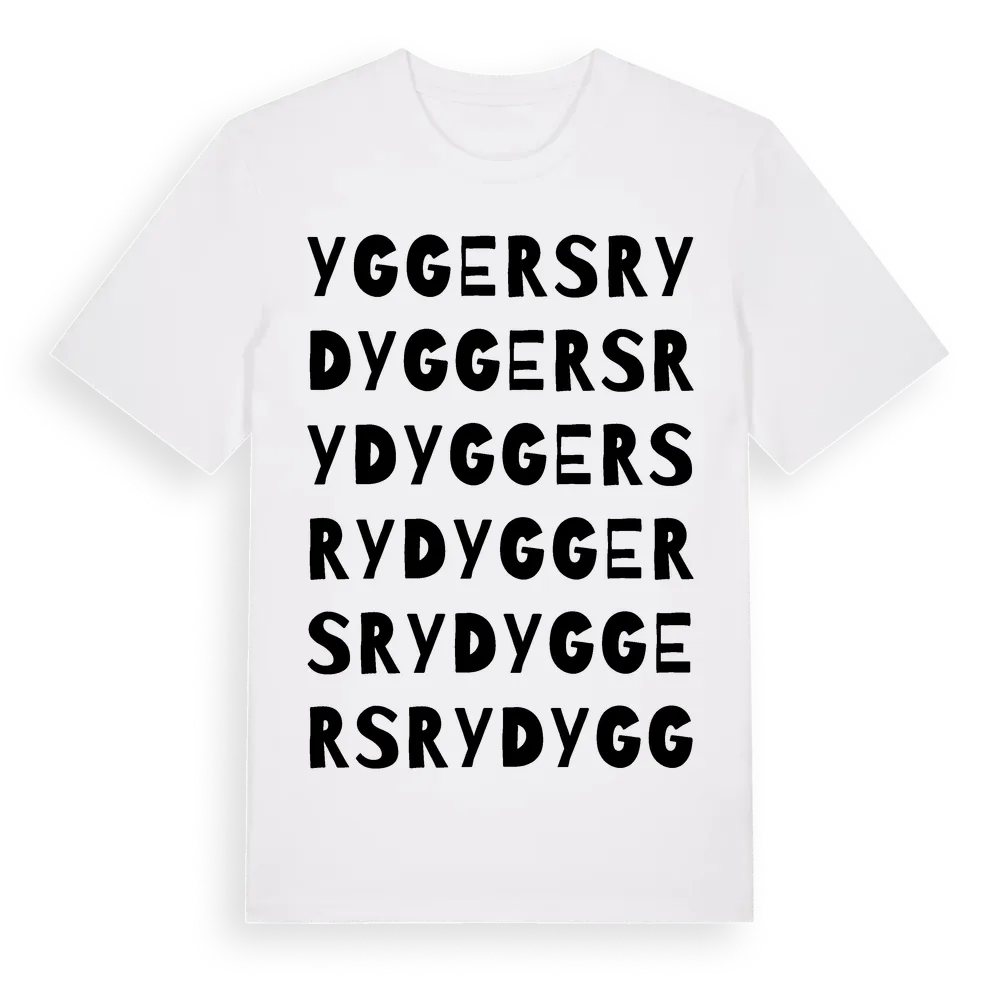 Yggersryd ordlek t-shirt är inspirerad av byn Yggersryd i Kalmar län, Sverige. Tröjan är designad för dig som har en speciell koppling till platsen – oavsett om du bor här, har rötterna här eller bara älskar Yggersryd.
