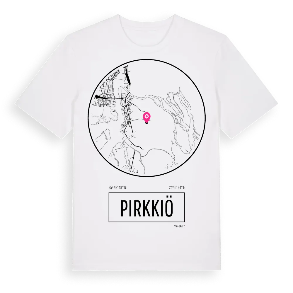 Ett rent, runt tryck med Pirkkiös namn. Minimalistiskt och stilrent – perfekt för den som känner platsen utan att skrika det. Premium bomull, unisex – från ön Pirkkiö.