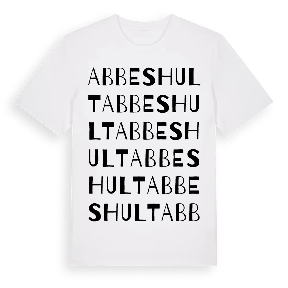 En ordlek byggd på Abbeshults namn. Subtilt och klurig – ett motiv som bara de som verkligen känner platsen fullt ut förstår. Premium bomull, unisex – från byn Abbeshult i Kronobergs län.