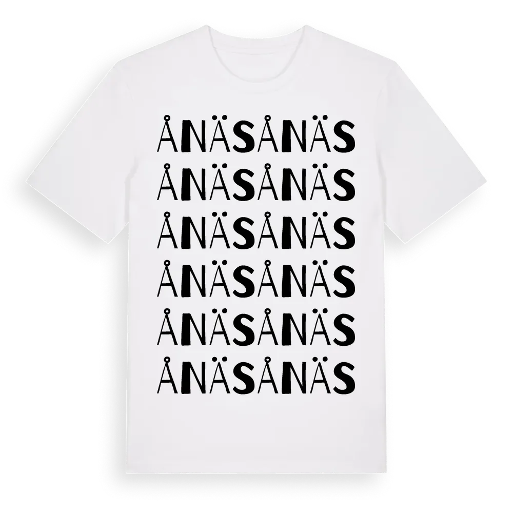 Ånäs ordlek t-shirt är inspirerad av Ånäs i Kronobergs län, Sverige. Tröjan är designad för dig som har en speciell koppling till platsen – oavsett om du bor här, har rötterna här eller bara älskar Ånäs.