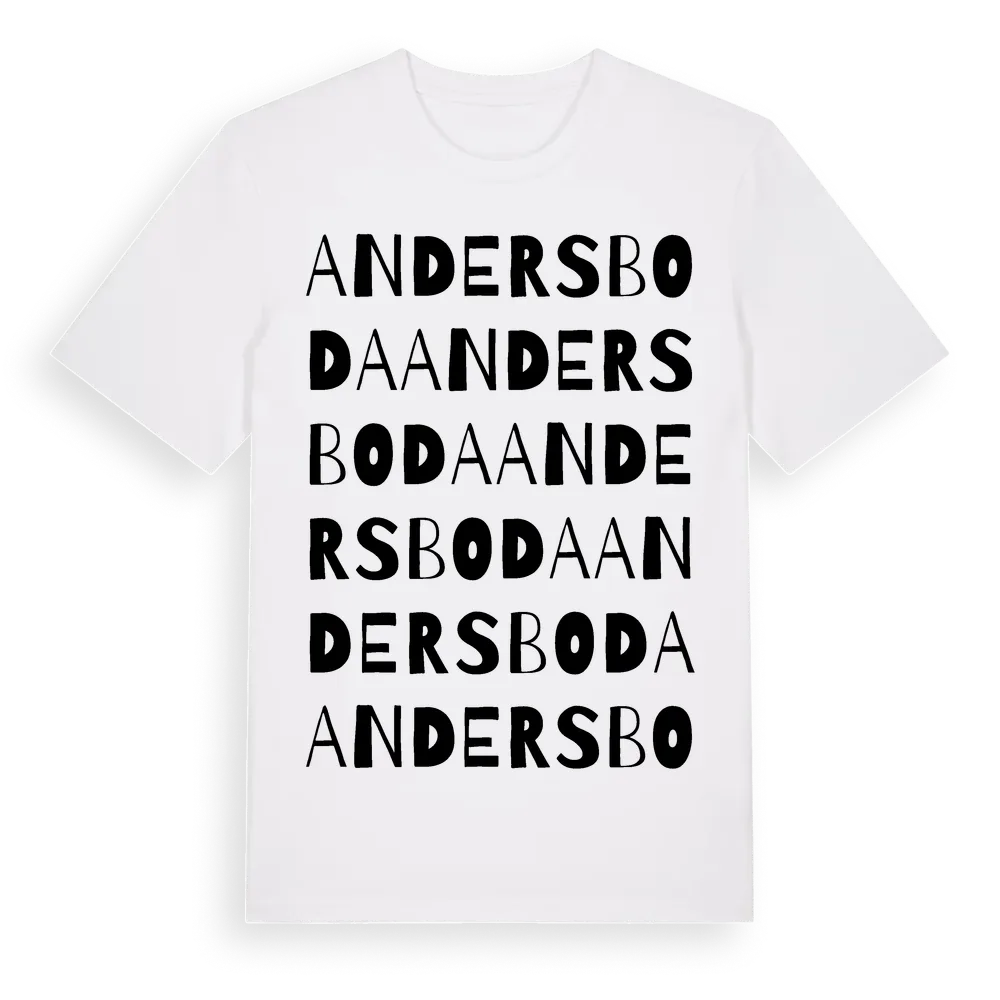 Andersboda ordlek t-shirt är inspirerad av Andersboda i Kronobergs län, Sverige. Tröjan är designad för dig som har en speciell koppling till platsen – oavsett om du bor här, har rötterna här eller bara älskar Andersboda.