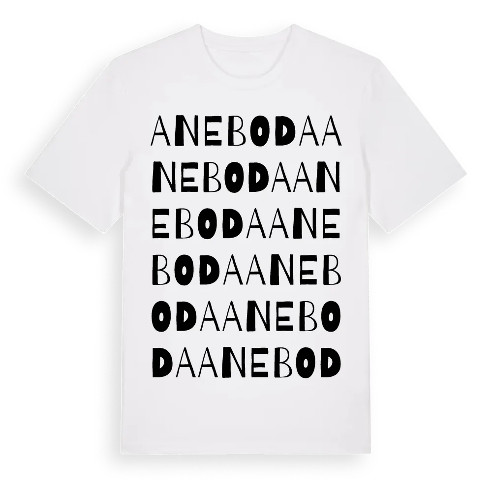 En ordlek byggd på Anebodas namn. Subtilt och klurig – ett motiv som bara de som verkligen känner platsen fullt ut förstår. Premium bomull, unisex – från byn Aneboda i Kronobergs län.