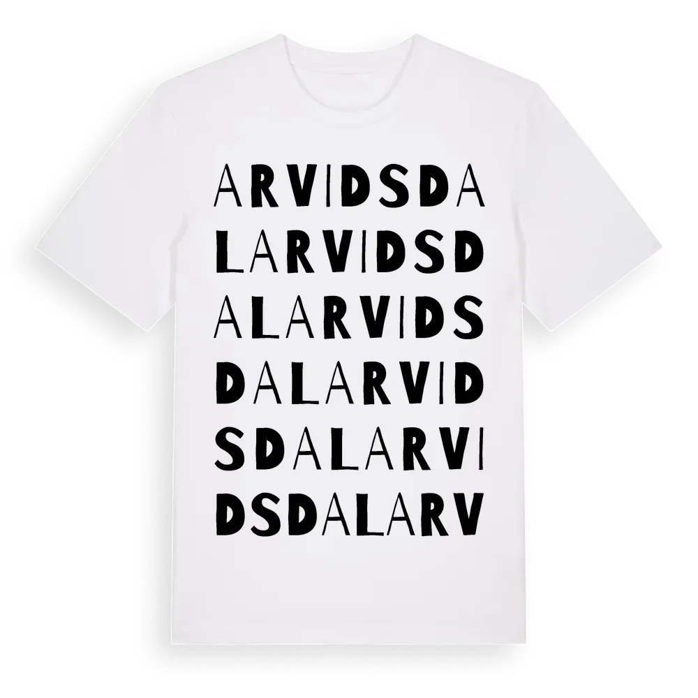 Arvidsdal ordlek t-shirt är inspirerad av Arvidsdal i Kronobergs län, Sverige. Tröjan är designad för dig som har en speciell koppling till platsen – oavsett om du bor här, har rötterna här eller bara älskar Arvidsdal.