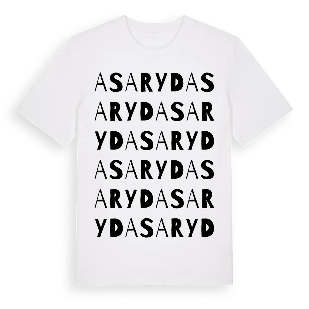 Asaryd ordlek t-shirt är inspirerad av byn Asaryd i Kronobergs län, Sverige. Tröjan är designad för dig som har en speciell koppling till platsen – oavsett om du bor här, har rötterna här eller bara älskar Asaryd.