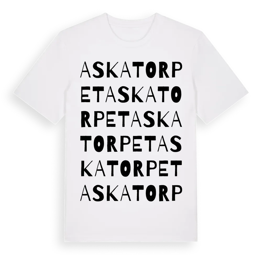Askatorpet ordlek t-shirt är inspirerad av Askatorpet i Kronobergs län, Sverige. Tröjan är designad för dig som har en speciell koppling till platsen – oavsett om du bor här, har rötterna här eller bara älskar Askatorpet.
